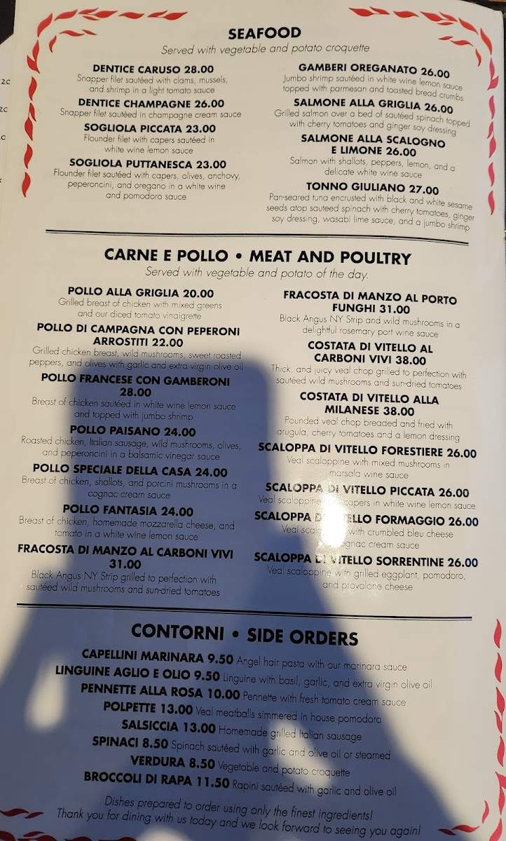 Start your meal with delicately prepared antipasti like Calamari Fritti E Zucchini or Cozze Alla Napoletana, perfect for sharing or enjoying as a prelude to richer main courses. The pasta dishes—from house-made gnocchi and hearty manicotti with spicy Bolognese to fresh ravioli—offer comforting flavors that invite slow savoring, ideal for a relaxed night out or a special gathering.